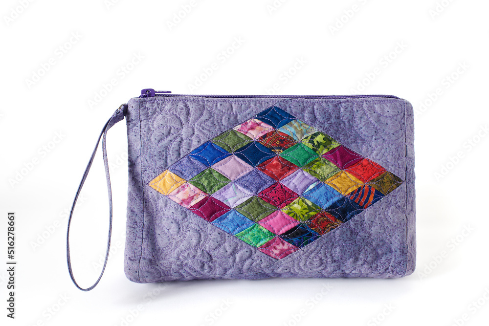 Multi-colored rhombus pattern patchwork mini zipper bag