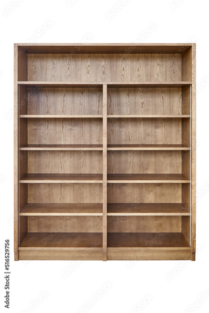 Wooden bookcase made of toned ash veneered MDF isolated on white background