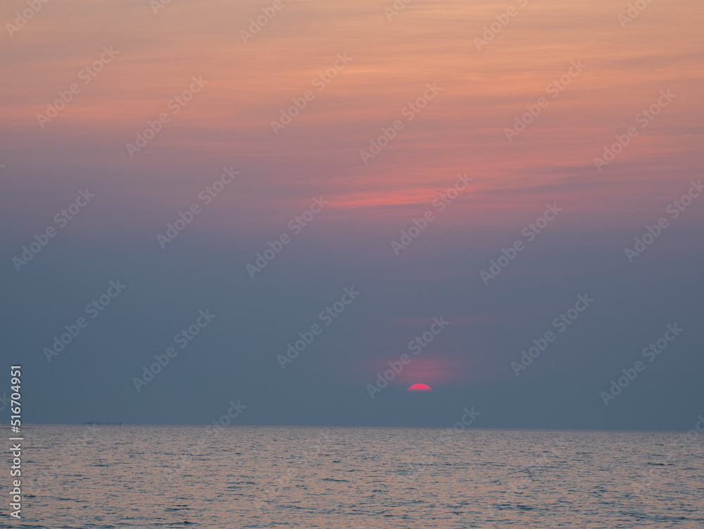 landscape viewpoint for design postcard and calendar summer sea wind wave cool on holiday calm sea coastal area sunset sky light orange golden evening hours day At Bang san Beach Chonburi Thailand