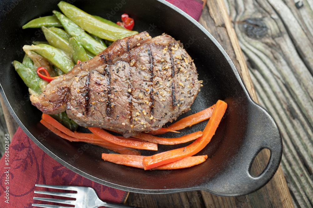 Grilled Steak on a cast iron plate