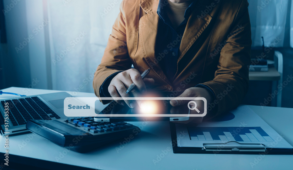 Data Search Technology Search Engine Optimization. man's hands are using a computer keyboard to Searching for information. Using Search Console with your website.