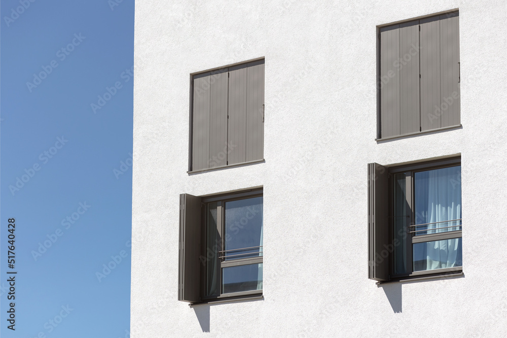 External Blind, Sliding Shutter, Modern Shutter on Window of Modern Residential Building.