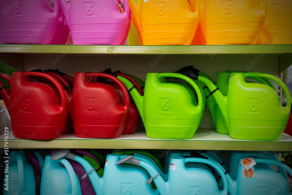 decoration element with colors and figures multicolored plastic watering can