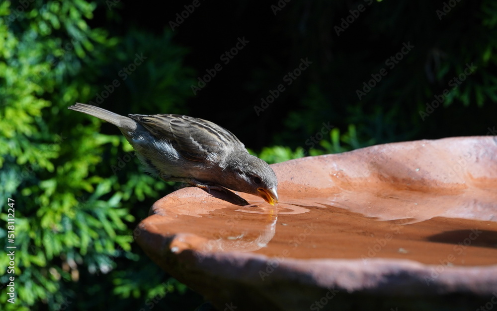 young sparrow at the bird bath,junger sperling an der vogeltränke