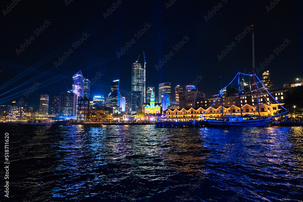 Sydney Harbor at night, Skyline at night, beautiful night landscape downtown cityscape view of Sydney city, Sydney CBD, Australia