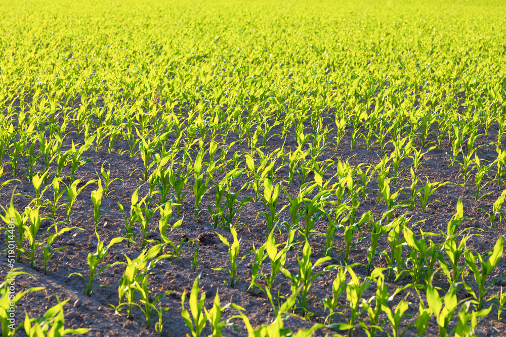 Many shoots of young corn, Corn green field