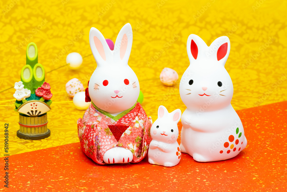 写真素材: 2023年の干支は卯(う・うさぎ) 卯年の年賀状素材(和風、和紙、千代紙、お正月小物等)