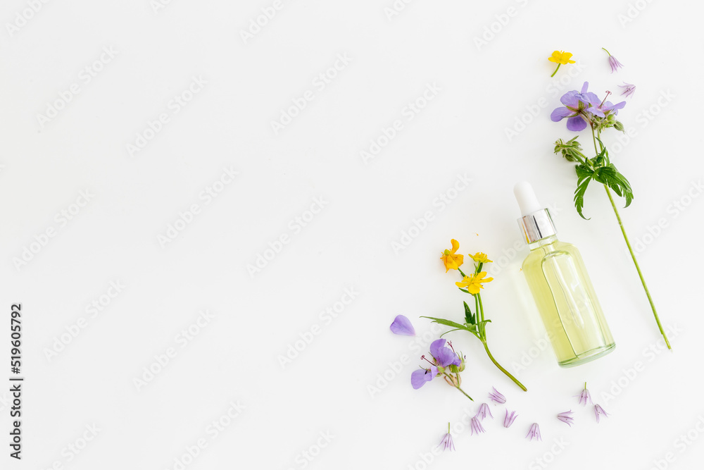 Cosmetic bottle with pipette and medicinal herbs essential oil