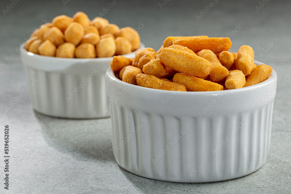 Snacks in ramekin on the table.