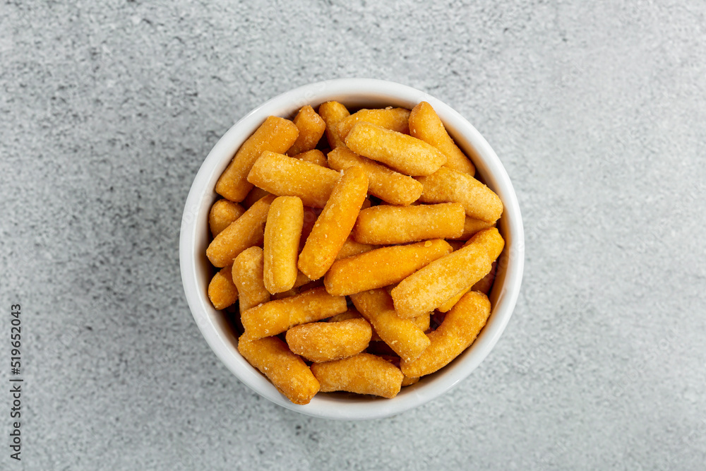 Snacks in ramekin on the table.