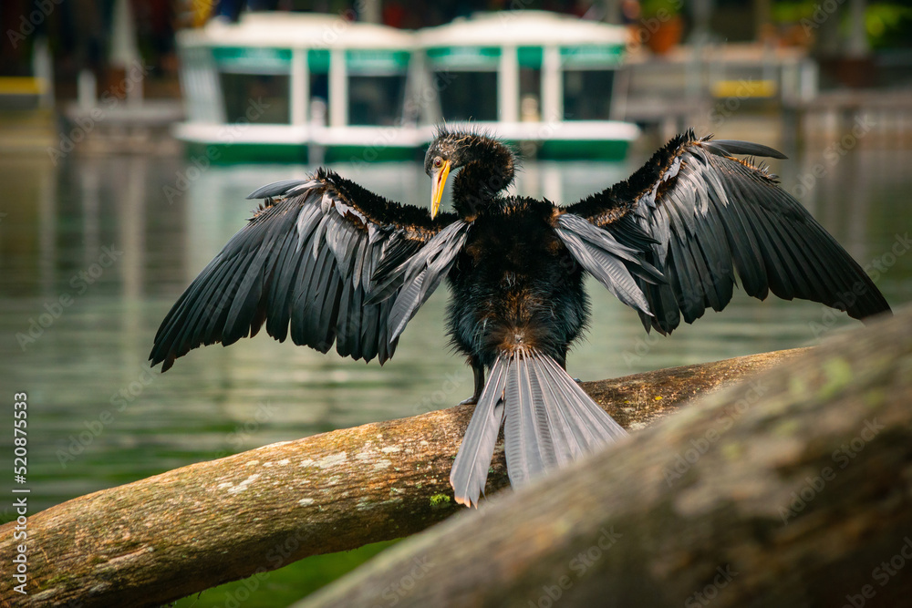 Ave acuática secando sus alas