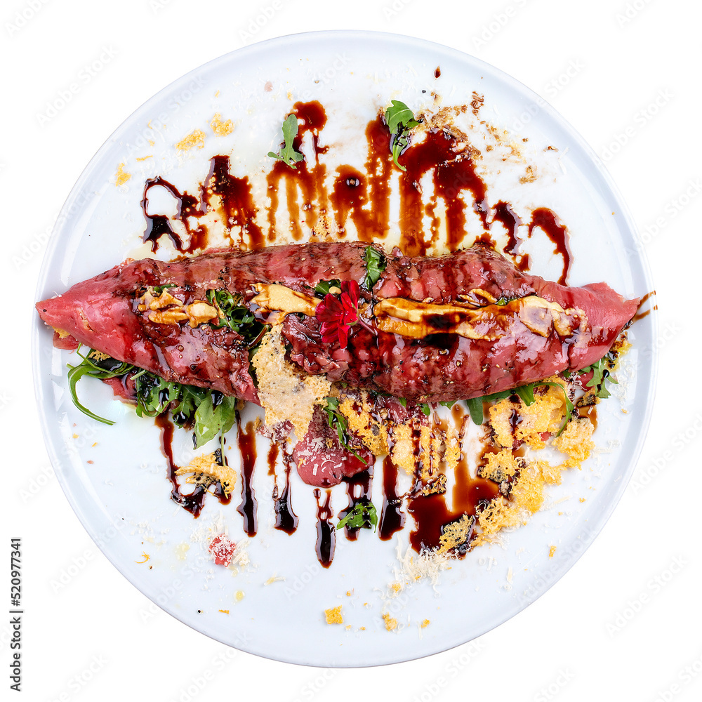 Raw beef tartare with parmesan cheese and wine sauce.