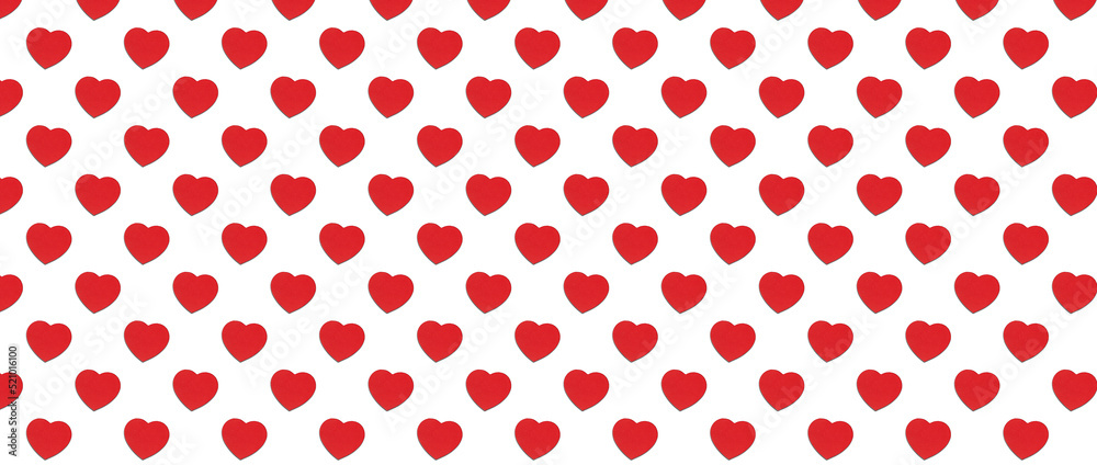 A seamless pattern of red hearts on a white background. Valentine's Day, Love
