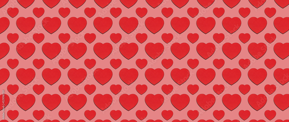 A seamless pattern of red hearts on a red background. Valentine's Day, Love