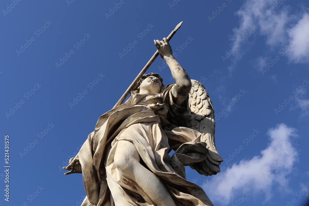 Ponte Sant'Angelo Bridge Statue of an Angel Holding a Spear Close Up in Rome, Italy