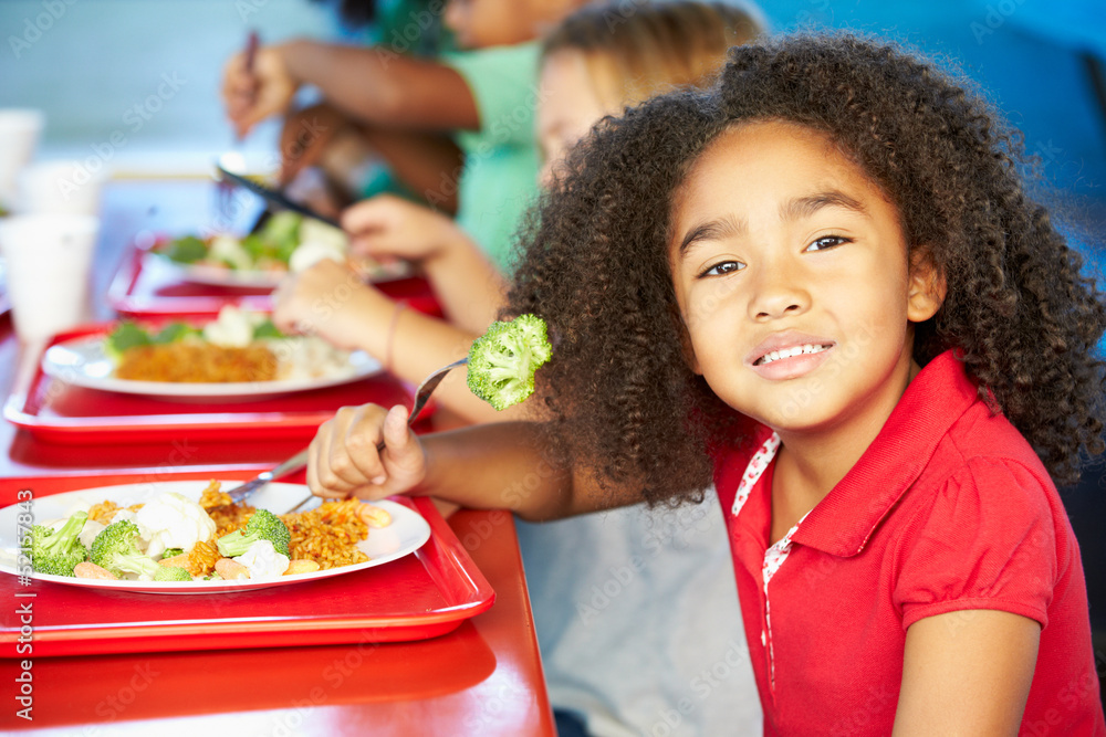 Elementary Pupils Enjoying Healthy Lunch In Cafeteria