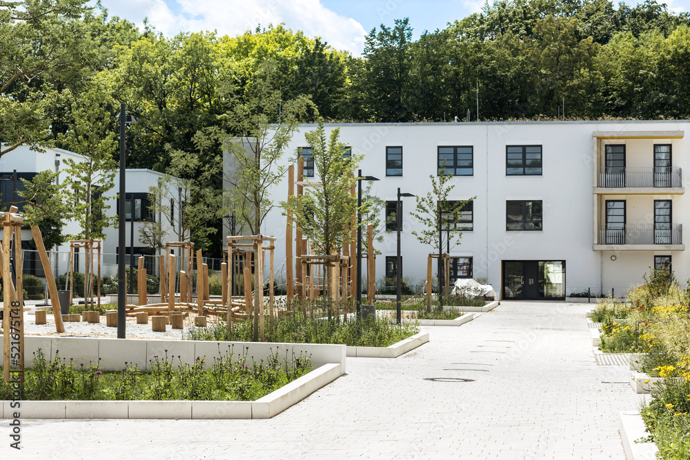 Building Comfortable Home of Europe with Landscape Garden. Modern Appartment Building in Green City.