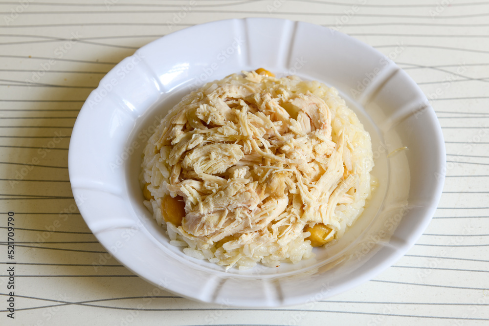 Traditional delicious Turkish food; Turkish style rice pilaf (Turkish name; Arpa sehriyeli. tavuklu, kuru fasulyeli, kavurmali pirinc pilavi)