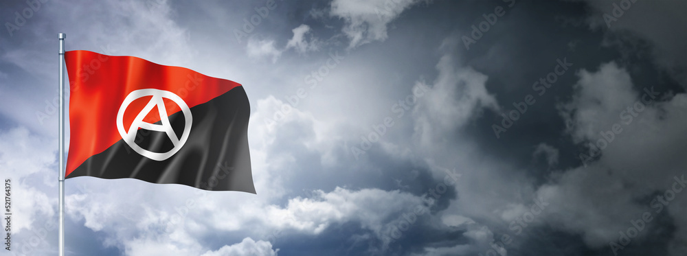 Anarchy flag on a cloudy sky