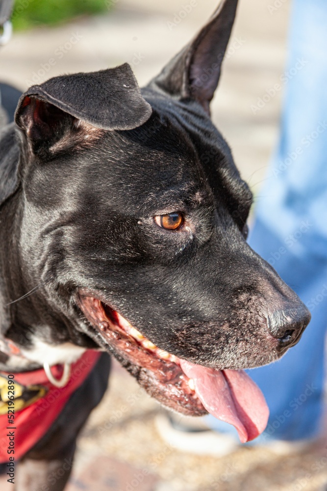 Closeup portrait of a Staffordshire Terrier with an open mouth