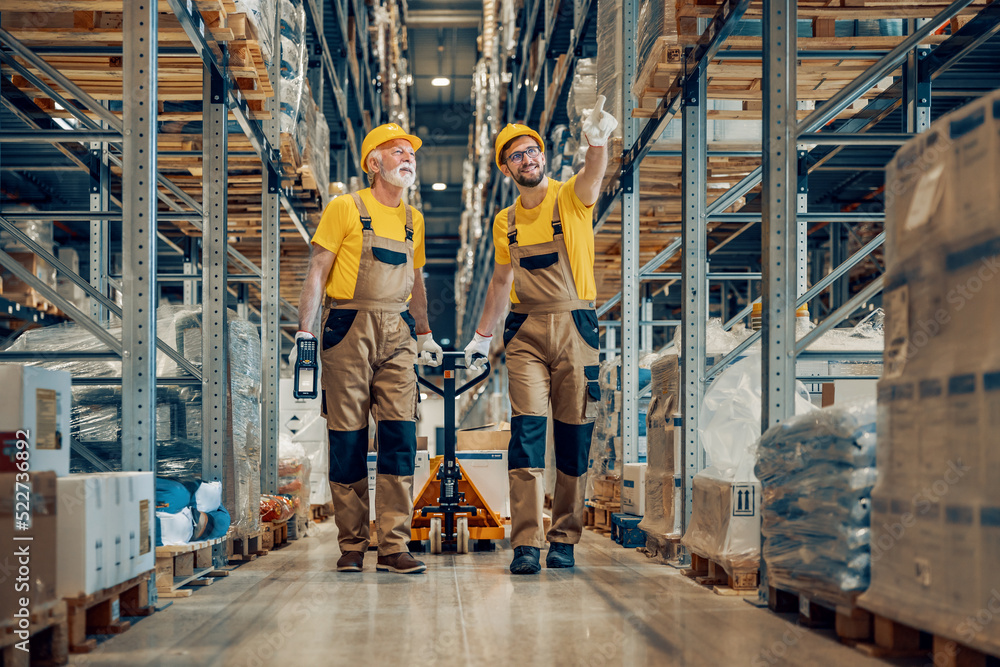 Two workers in uniform at warehouse