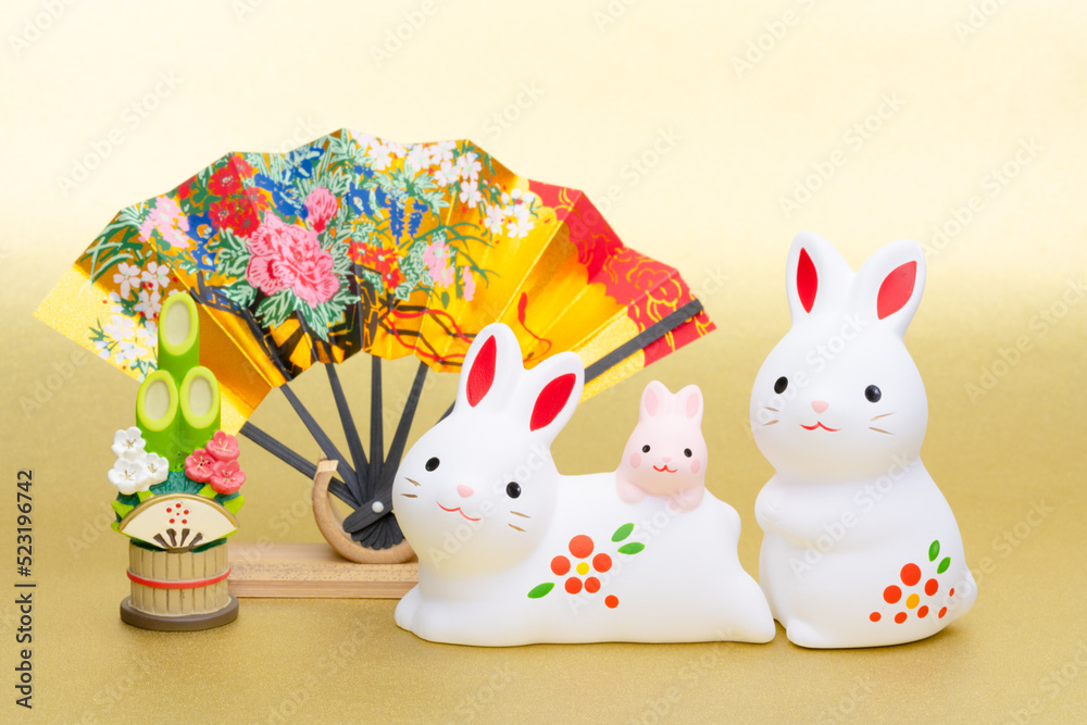 写真素材:令和5年・2023年の干支は卯(う・うさぎ) 卯年の年賀状素材(和風、和紙、千代紙、お正月小物等)