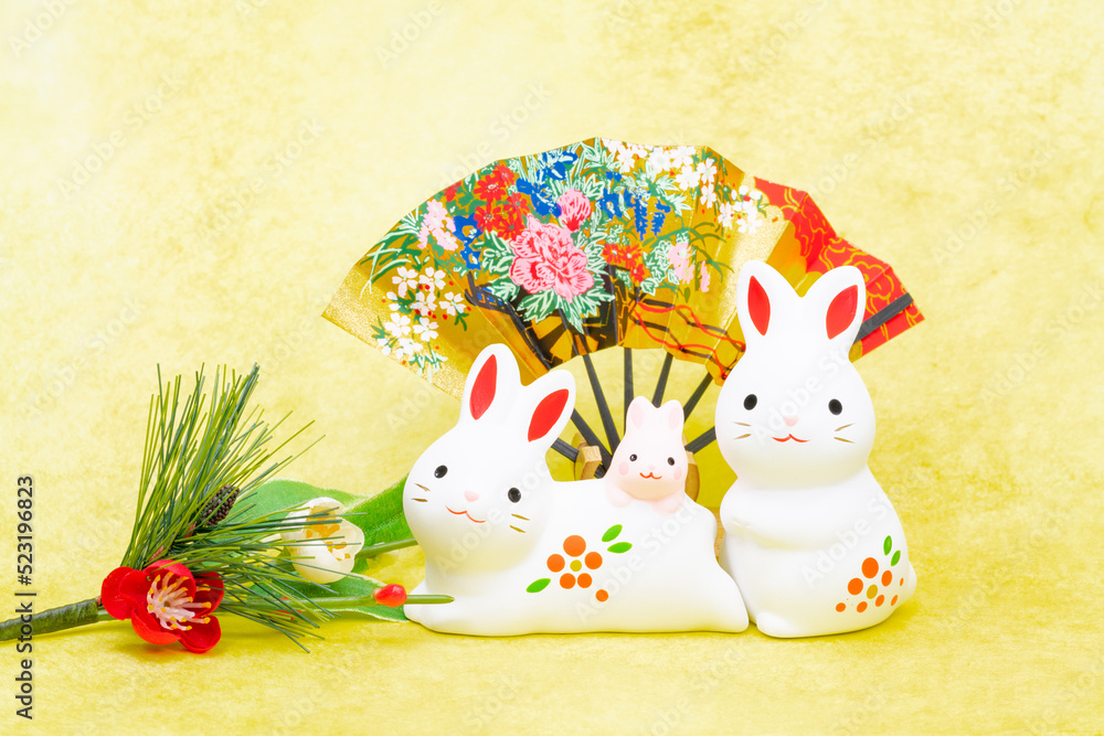 写真素材:令和5年・2023年の干支は卯(う・うさぎ) 卯年の年賀状素材(和風、和紙、千代紙、お正月小物等)