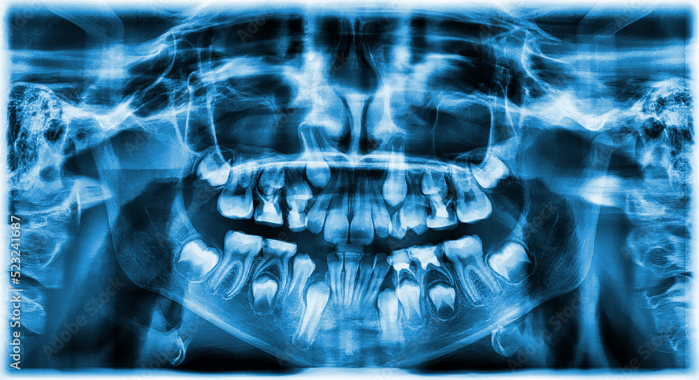 different types of wisdom teeth problems concept. Problem teeth X-ray image scanned