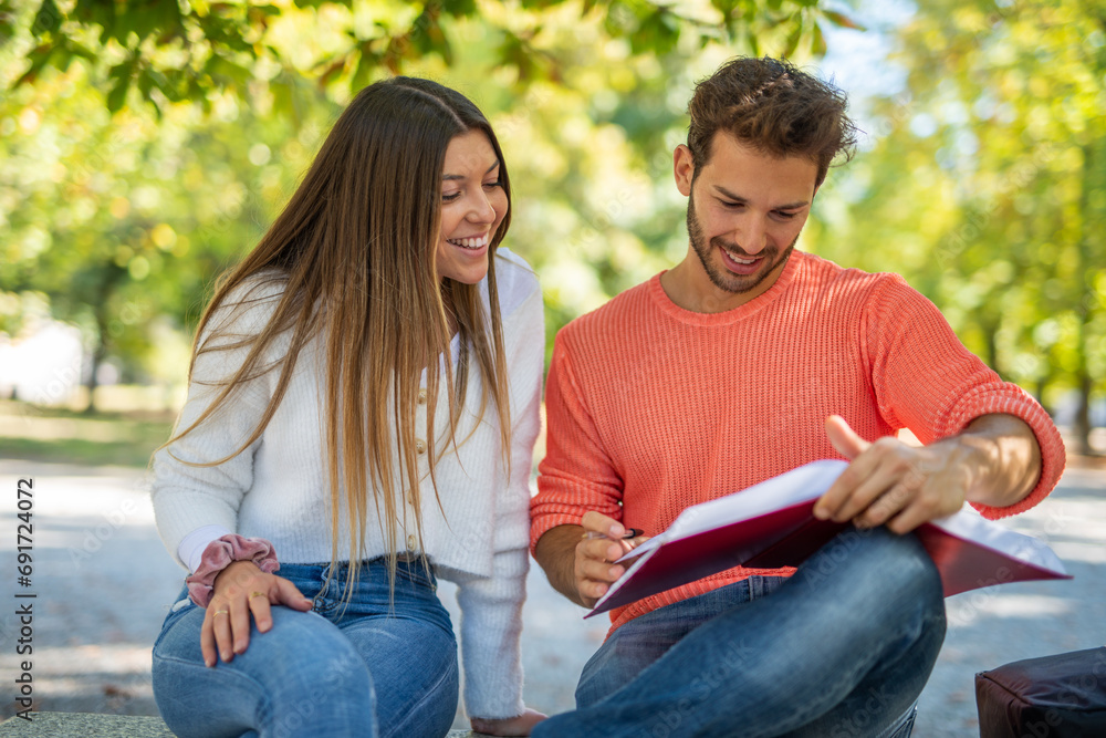 Sign 2023 on a small straight asphalt road at sunrise. New year plans and resolution. Warm color tone. Sun flare and glow.