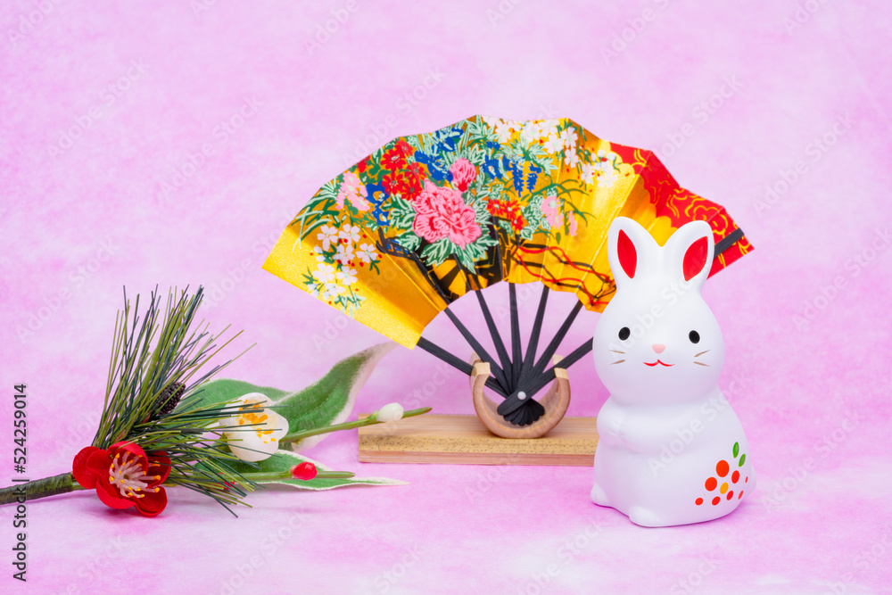 写真素材:令和5年・2023年の干支は卯(う・うさぎ) 卯年の年賀状素材(和風、和紙、千代紙、お正月小物等)