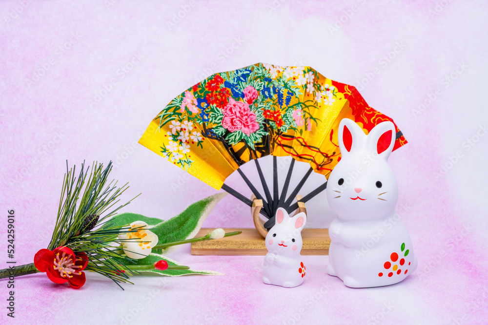 写真素材:令和5年・2023年の干支は卯(う・うさぎ) 卯年の年賀状素材(和風、和紙、千代紙、お正月小物等)