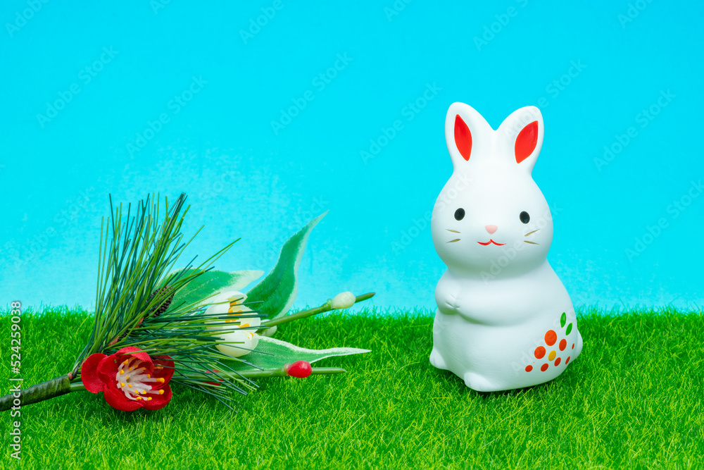 写真素材:令和5年・2023年の干支は卯(う・うさぎ) 卯年の年賀状素材(和風、和紙、千代紙、お正月小物等)