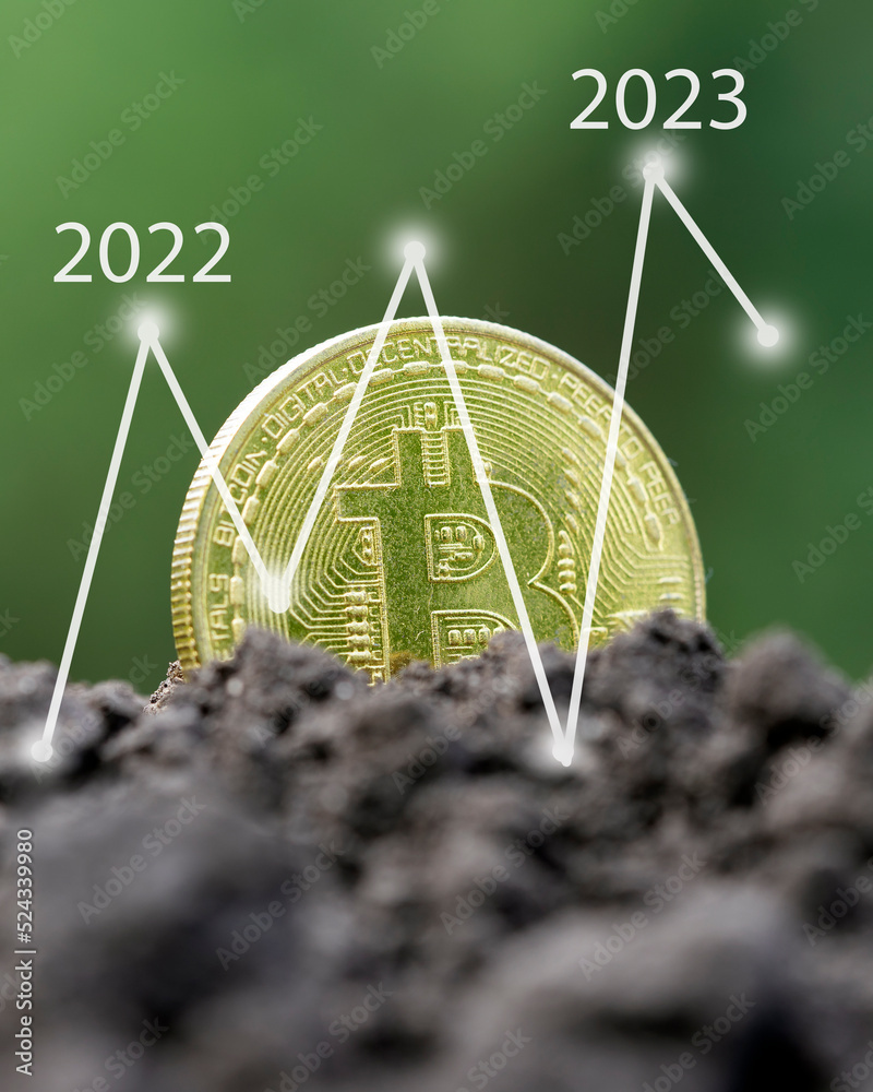 The concept of extraction and mining of cryptocurrency. Bitcoin dug up in the ground