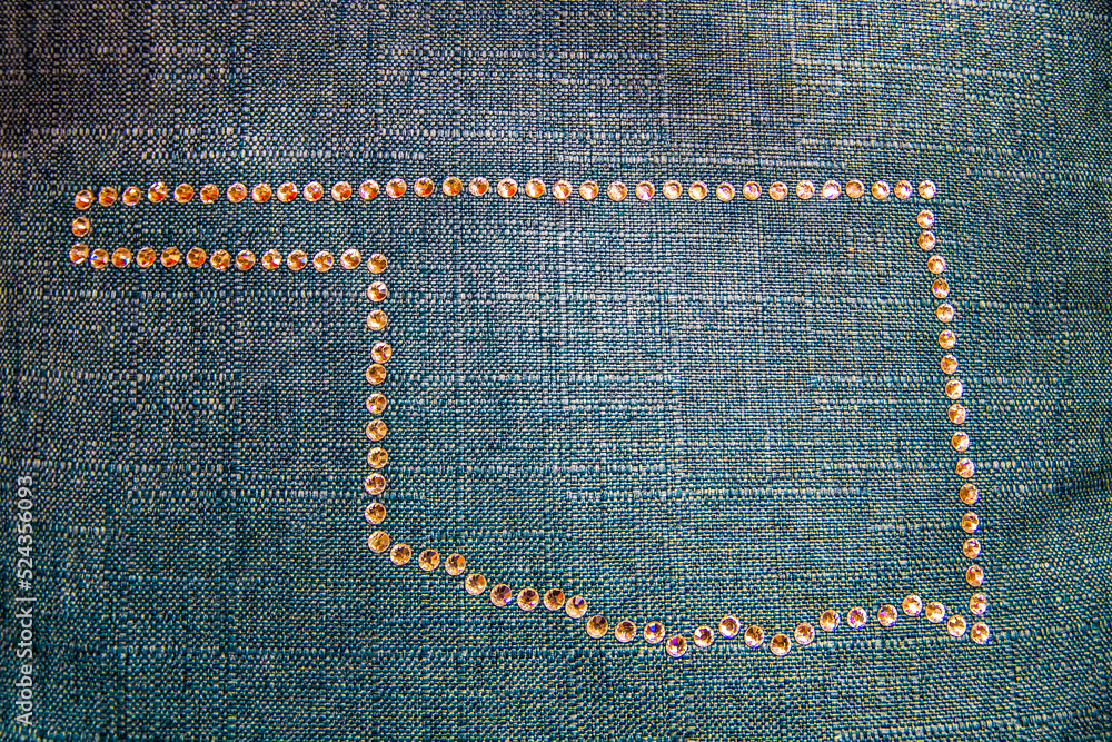 Rhinestone Oklahoma state outlined in pink rhinestones on rough woven denium material