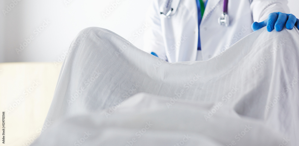 male obstetrician and scrubs nurse are delivered to the pregnant woman in the delivery room of the hospital