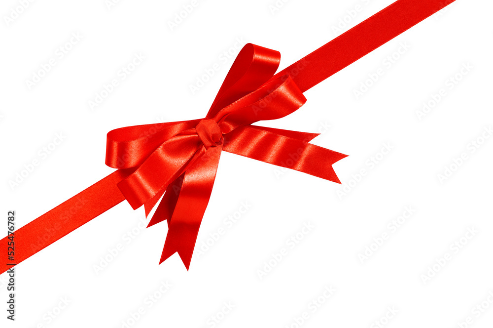Diagonal red gift ribbon bow isolated transparent background photo PNG file