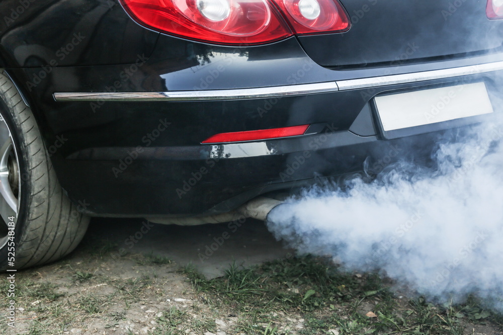 smoke from the exhaust pipe of a car. harm to the environment from internal combustion engines. the engine consumes oil. increased oil consumption in the engine