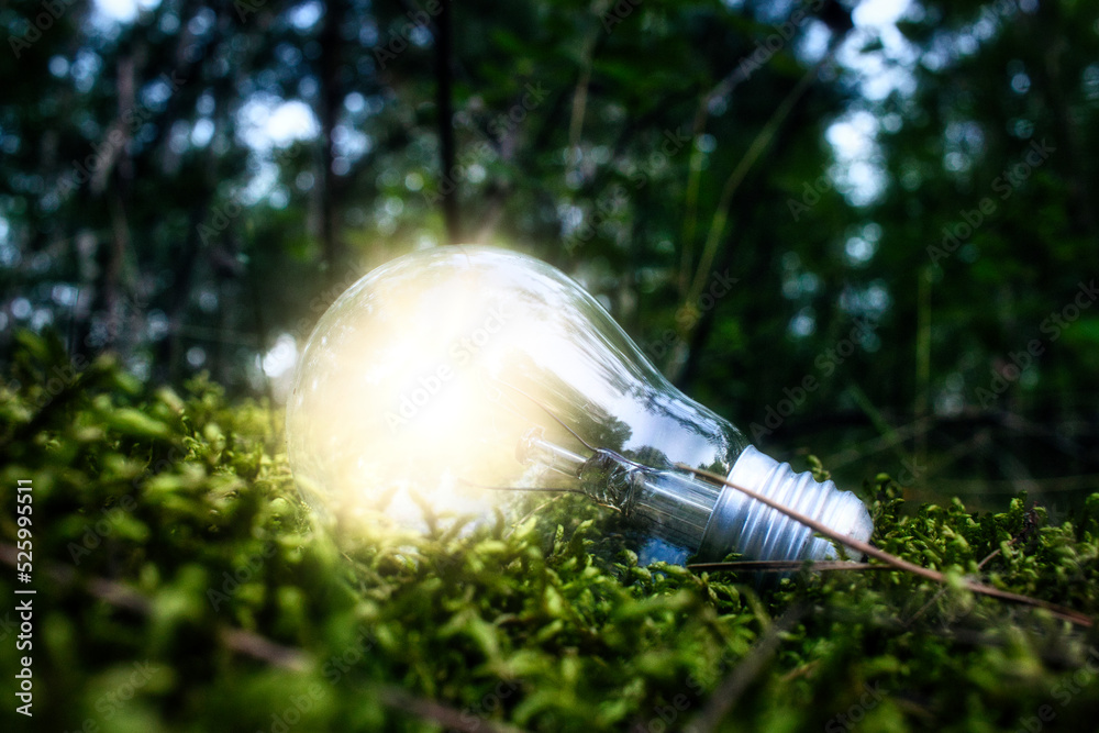 Glühbirne im Moos - Environment - Ecology - High quality photo - lightbulb on a field- green energy concept - Bioeconomy
