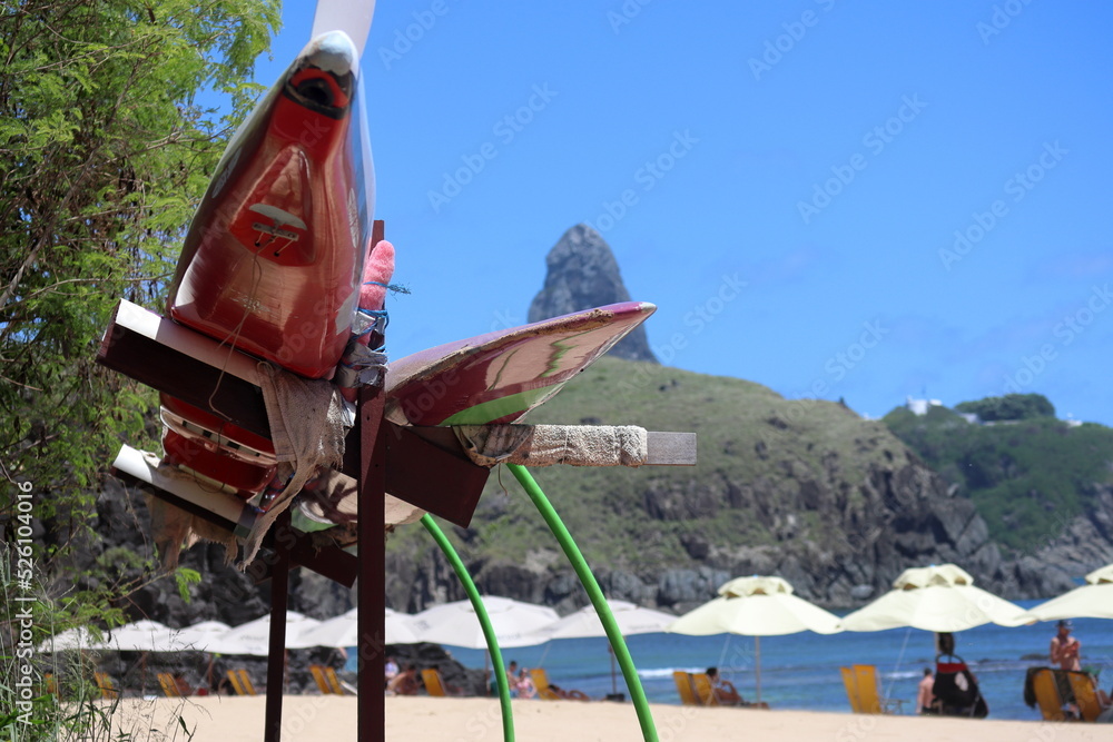 Hawaiian canoe laying on Porto beach, Fernando de Noronha