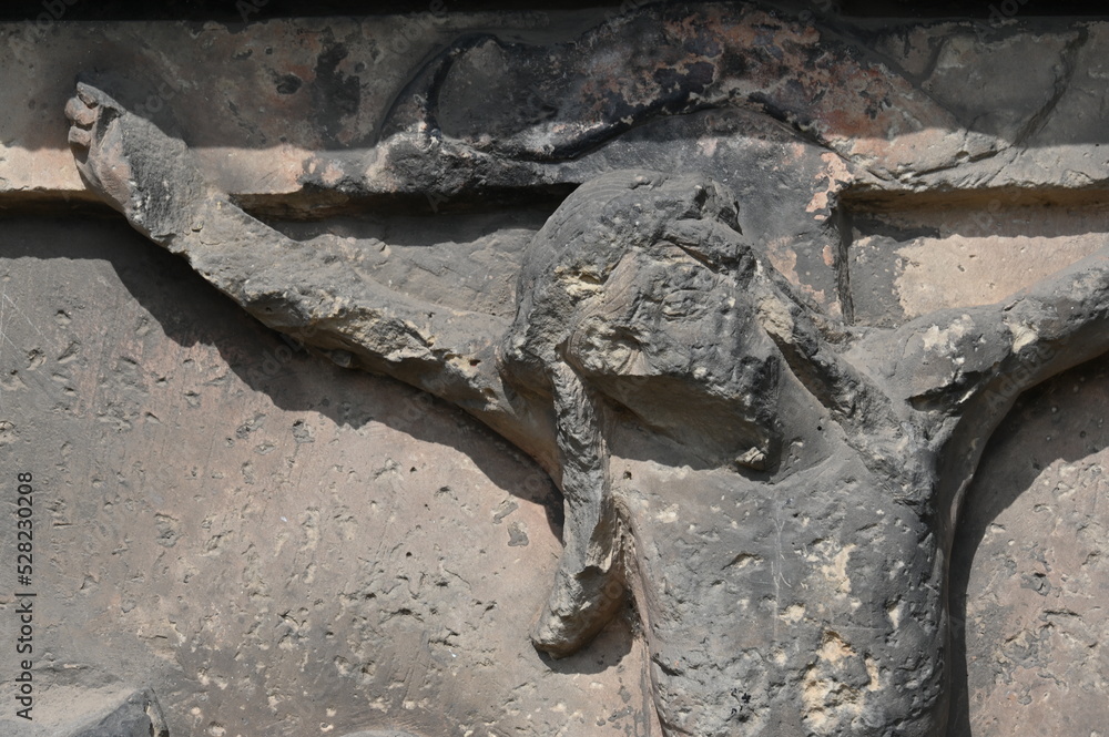 Mittelalterliches Kreiuzigungsrelief an der St. Petrikirche in Magdeburg