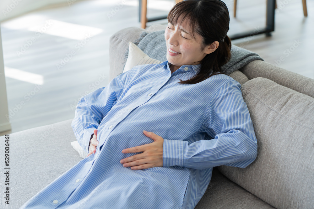自宅で陣痛を感じる日本人妊婦