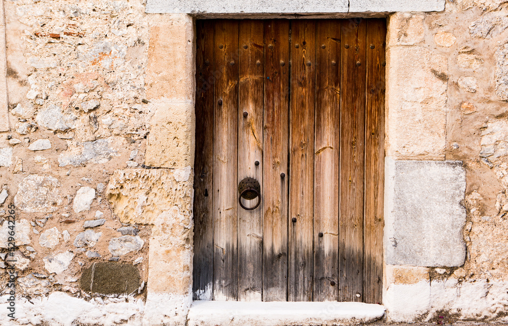 Narrow and colorful street in the village of Kritsa in the island of Crete. White street, beautiful traditional housing in Greece.