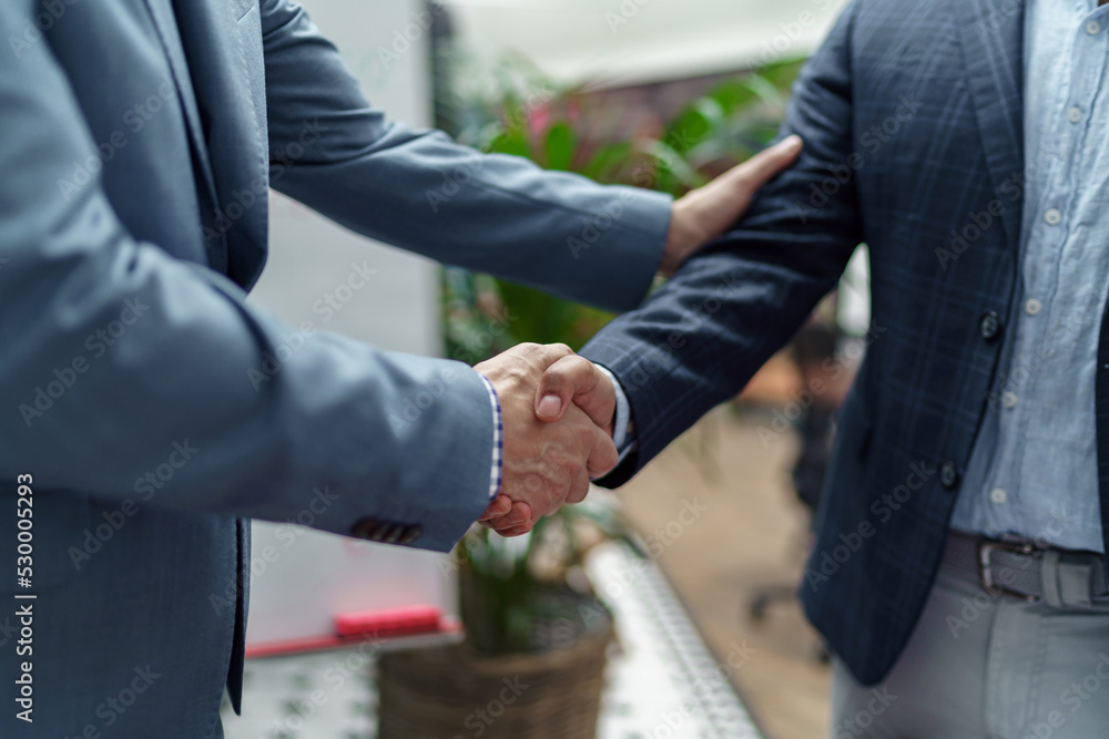 Business male partnership handshake. Photo handshaking process. Successful deal after meeting