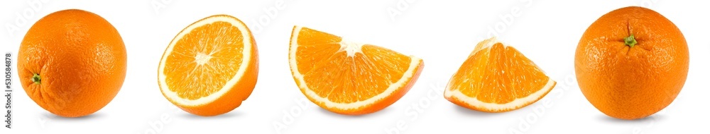orange fruit with cut of orange isolated on white background. clipping path