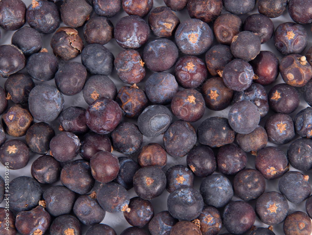 Juniper Berries, Whole, in Full Frame View Isolated on White