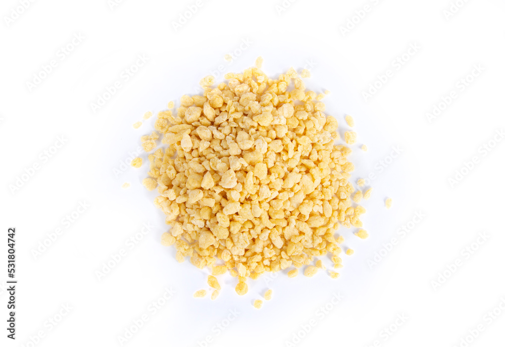 Hungarian Grated Noodles in Heap or Pile in Flat Lay or Top Down View Isolated on White