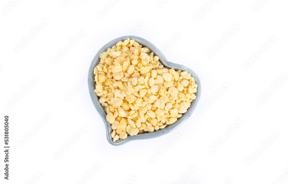Authentic Hungarian Grated Noodles in Blue Heart Shaped Pottery Bowl Isolated on White