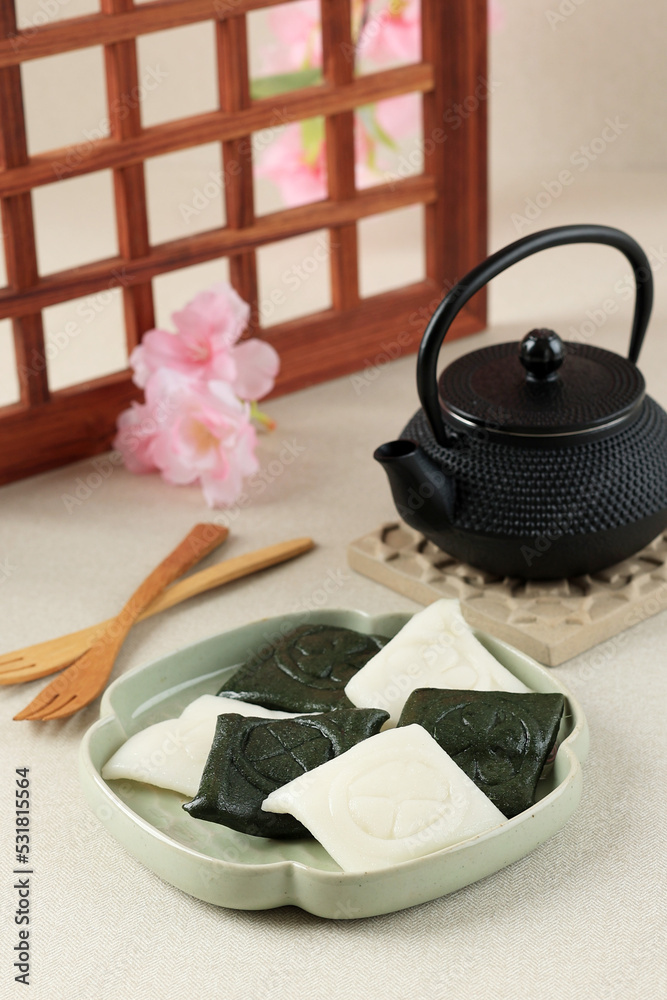 Jeolpyeon, Korean Traditional Rice Cake. Made of Glutinous Rice Flour, Steamed and Pounded into Dough.