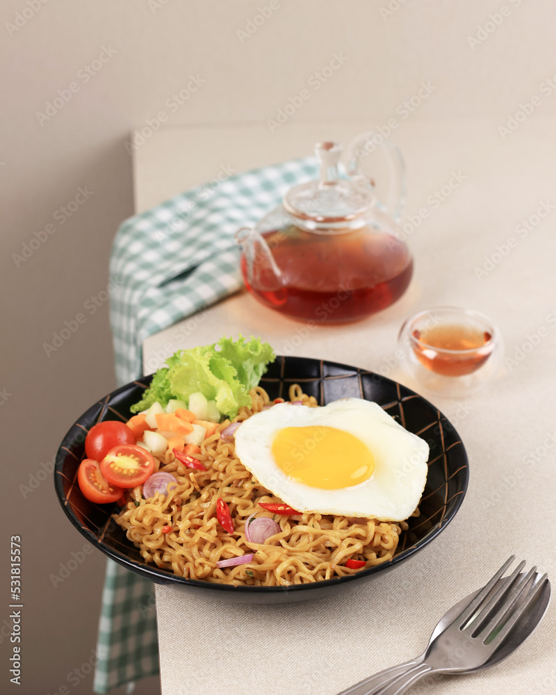 Indomie Goreng, Favorite Most Popular Instant Noodle Brand from Indonesia. Served with Vegetable
