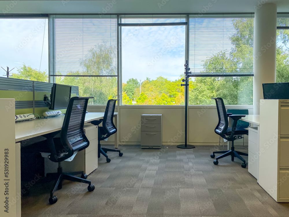 A UK office is empty of people
